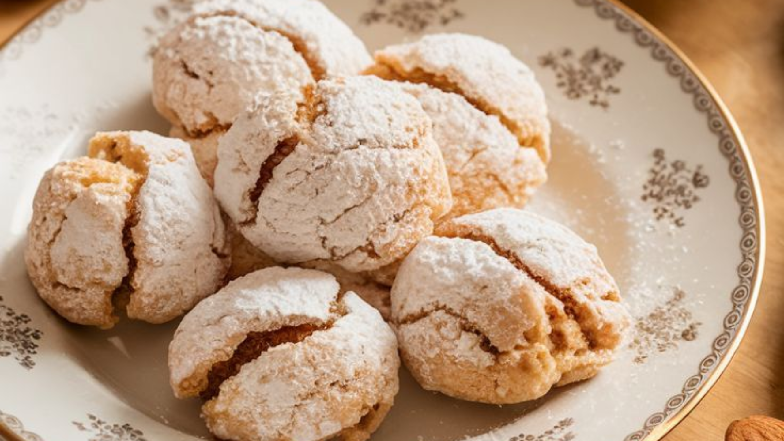 - Amaretti decorati: aggiungi una mandorla intera sopra ogni pallina prima della cottura per un tocco elegante! ✨