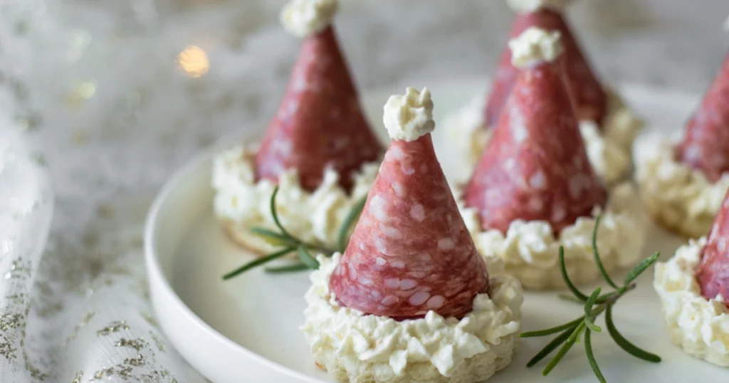 I cappelli di Babbo Natale uniscono tre qualità fondamentali per un antipasto natalizio riuscito: velocità, praticità e impatto visivo. Non richiedono cottura, possono essere assemblati in anticipo e sono facili da mangiare anche in piedi.