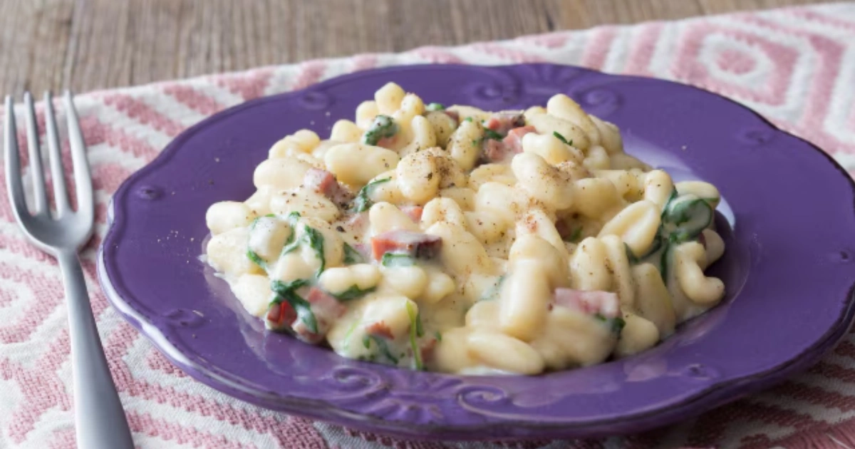 Cavatelli con Speck, Rucola e Crema di Patate: Un Primo Cremoso e Saporito