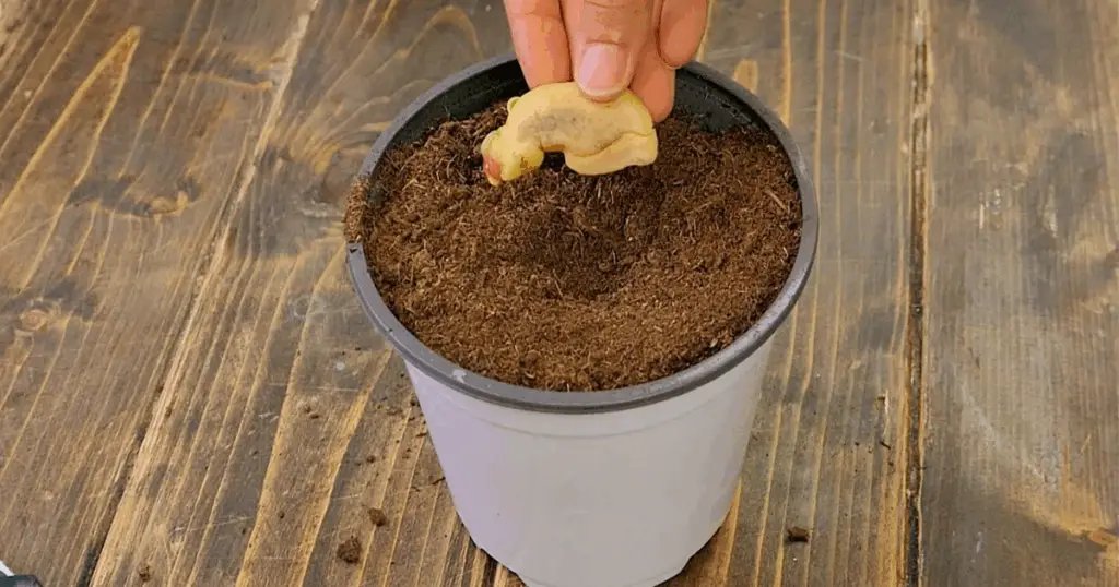 - Piantare la semente inclinata, lasciando il germoglio esposto.
