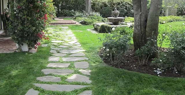 Percorsi curvi vs. rettilinei: i percorsi curvi, come mostrato nelle immagini, sono più organici e si integrano bene con i giardini naturali. I percorsi rettilinei sono più facili da costruire, ma possono apparire più formali.