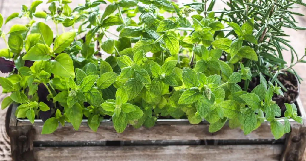 Se vuoi un mix più controllabile, puoi coltivare la menta in un vasetto inserito dentro la cassetta.