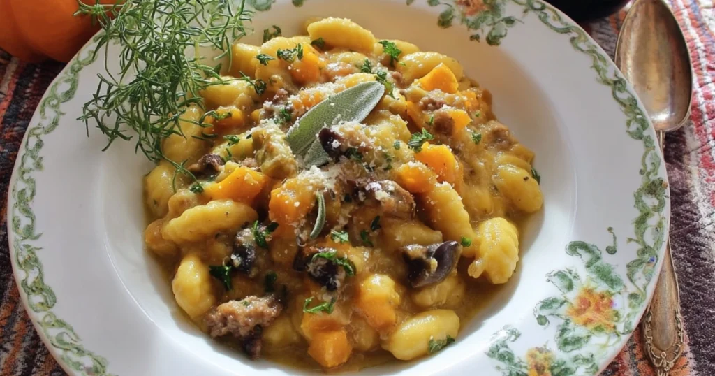 Gnocchetti con Zucca, Funghi e Salsiccia: Primo Piatto Autunnale Cremoso e Saporito