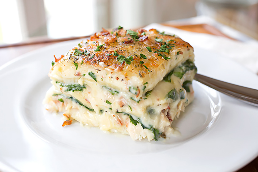 La lasagna bianca di pollo e spinaci è una deliziosa variante della classica lasagna italiana.