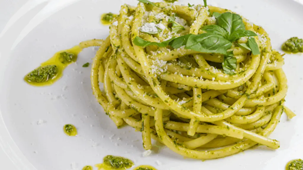 Linguine al Pesto di Pistacchio, Bufala e Pancetta