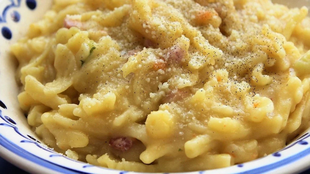 La sua magia sta proprio nella consistenza cremosa, data dalla pasta “risottata” e dall’amido rilasciato dalle patate, arricchita dalla filatura irresistibile della provola affumicata.