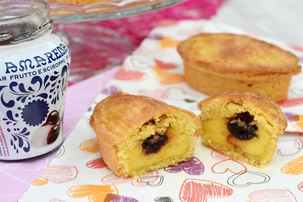 - 🍒 Aggiungi 1 amarena al centro di ogni pasticciotto.