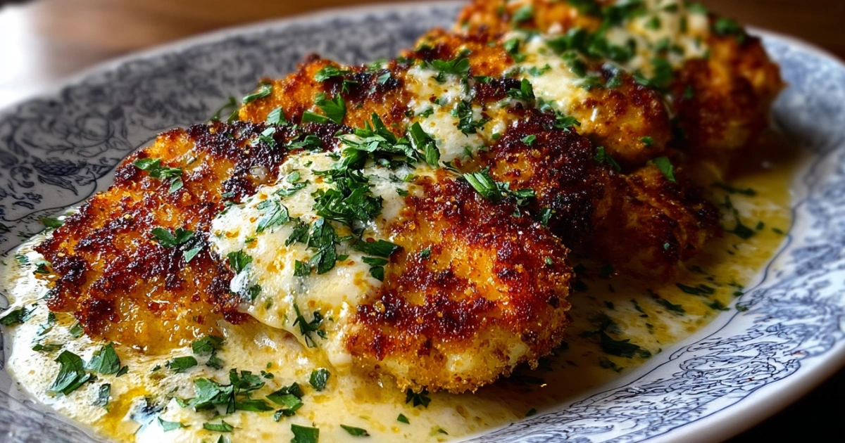 Pollo Impanato al Parmigiano con Salsa Cremosa all’Aglio