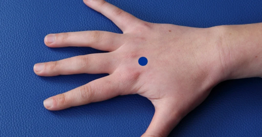 Appoggiare la mano sul palmo opposto e premere il punto centrale con il pollice in modo verticale per alcuni secondi. Continuare con movimenti circolari lenti e delicati. Chiudere gli occhi, respirare profondamente e ripetere il massaggio più volte, soprattutto in caso di uso prolungato di schermi.